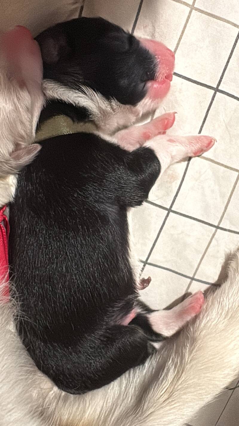 En om 1400 is daar de eerste pup een prachtig getekend zwart reutje van 396 gram groentje