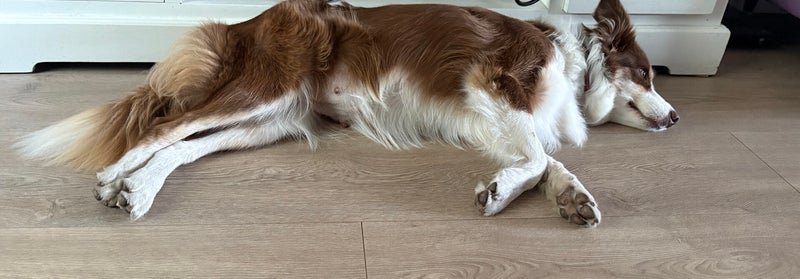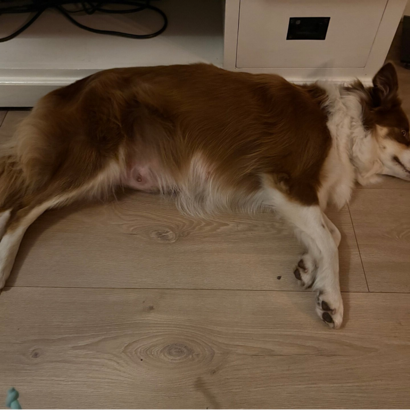 31 augvandaag mijn laatste werkdag, lily rent nog gewoon naast de fiets mee, haldlf uur gewandeld en tien wilde ze wel in de kar terug. Frank had tussen de middag renske gestoomd gegeven maar ze wilde het niet. Na het wandelen moest ze opeens gal spoegrn maar ze oogt niet ziek. Vers vlees gepakt en dat wilde ze wel. Mevrouw wordt wel kieskeurig, alleen rodi op smuldier moet het zijn, de dure puppyvlees plakken eet zd slecht. je ziet de pups nu bewegen en voelt ze duidelijk. Lily heeftal melk! 28 aug. Ze eet enorm veel, de kiloworsten waar ik normaal 2-3 dagen mee zou doen gaan er in net 1 dag doorheen, gewogen en toch maar 18,2 kilo. Even overlegd met de dierenarts, en idd ze moet gewoon meer eten als ze niet echt groeit. Gauw puppyvlees gekocht, zit ook meer energie in. Verder was ze gisteren boos omdat ik vond dat ze genoeg gerend had, wat heeft ze zittend in de fietskar met haar kop eruit geblaft iedereen keek mij na🫣. Kortom lily voelt zich prima al begint ze beetje te wachelen, vanochtend trok ze nog sprintje omdat ze een kat zag.