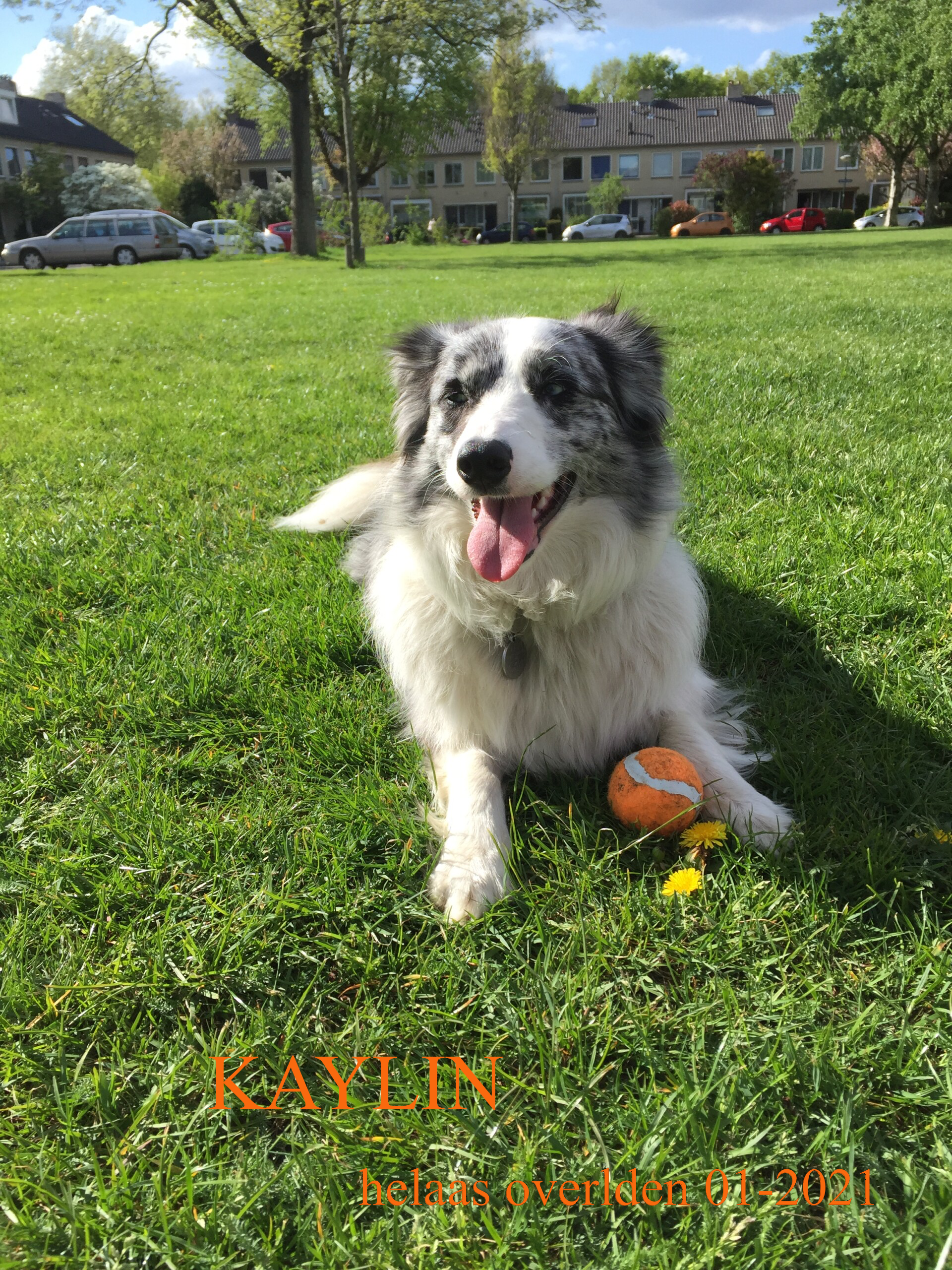 Veel rassen vielen af omdat ze te groot en/of te zwaar waren, te veel vachtwerk hadden, of steeds een trimmer nodig hadden. Of ik vond ze gewoon niet mooi. De border collie bleef in mijn achterhoofd spoken. Toen ik ontdekte dat ze in veel meer kleuren gefokt werden dan zwart-wit, was ik helemaal verliefd. Vooral die met de vlekken, de merlekleur, Wow! Gezien de kans op ziekten, en het pittige karakter van een bordercollie, besloot ik te kiezen voor een Australische herder, net wat relaxter. Na mij goed ingelezen te hebben, ontdekte ik dat ze toch wel flink zwaarder zijn dan een bordercollie, en ook een veel dikkere vacht hebben en ze met de zelfde ziektes te kampen hebben. Dan maar een leuke kruising zoeken. Zo vond ik kruisingen met een labrador, herder of friese stabij, maar dat vond ik niet mooi. Uiteindelijk vond ik een nestaankondiging van een border collie, gekruisd met een australische herder. Dat klonk mooi. Het baasje via marktplaats benaderd, en ik mocht voor een teefje op haar lijst, voorkeur Merle. Toen begon het wachten. Een week na de uitgerekende datum nog steeds niets gehoord. Na herhaaldelijke berichtjes, kreeg ik uiteindelijk alleen een foto van 8 pups. Op mijn vragen of er voor ons ook een teefje bij zat, kwam geen antwoord. We zaten net in een rottijd, eerst overgrootmoeder én overgrootvader overleden, en daarna de beide opa’s ernstig ziek geworden. Afgelopen week de begrafenis gehad van een van de opa's. Even onze zinnen verzetten, en erop uit met ons gezin, naar de camping in Limburg. Tegenover ons hadden mensen een golden retriever, enorm lief beest dat heel goed luisterde. Ze kon allerlei trucjes, zo'n hond wilden de kinderen ook. Toen we weer thuis kwamen nog steeds geen antwoord over de pups dus ik ging verder zoeken. Al snel kom je dan op Marktplaats terecht maar het viel niet mee. De meeste pups waren te bezichtigen zonder moeder (wilde ik niet) opgegroeid in een schuur (zeker niet) of veel te jong (echt niet!). Uiteindelijk vond ik een fokker die op al mijn vragen een goed antwoord had. Ze had een kruising Border collie met Australische herder, 8 weken oud.er waren maar 3 pups, 2 merle teefjes waarvan degene met de blauwe ogen wasr een optie op was, maar wie het eerst kwam die had nog keuze. Ik ben er heen gereden en helaas zaten ze inmiddels niet meer in de huiskamer maar in een schuur, als speelgoed lag er alleen een knuffel en een bal, wel waren ze netjes ontwormt, ingeënt en ontvlooit en hadden ze een paspoort, moeder zat er bij maar vloog direct naar buiten. Ik was niet echt tevreden maar zittend in het zaagsel kroop de pup met de blauwe ogen op schoot en blééf zitten wat ik ook deed. Als ik stopte met aaien legde ze haar poot op mijn hand om door te gaan. Zo ging ik toch met de prachtige pup naar huis en noemden we haar Kaylin. Later ontdekten we dat ze door een broodfok dierenarts gechipt was en vanaf 1 jaar aan epilepsie leed. Ik heb natuurlijk direct contact opgenomen met de fokker maar kwam alleen een lauwe reactie, "o daar zijn goede pillen voor". Toen we Kay al een week hadden werd ik opeens gebeld door de eerste fokker, wilden wij nou nog een teefje, nou nee! Later bleek de reu die ze gebruikt had drager van MDR1 en was haar eigen teef niet eens getest, zo blij dat dat toen niet door is gegaan.